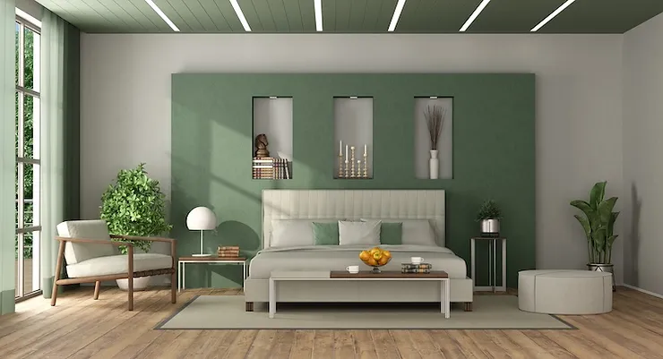 La scelta dell’arredamento può aiutarti a completare l’effetto visivo creato dal colore delle pareti e del soffitto.